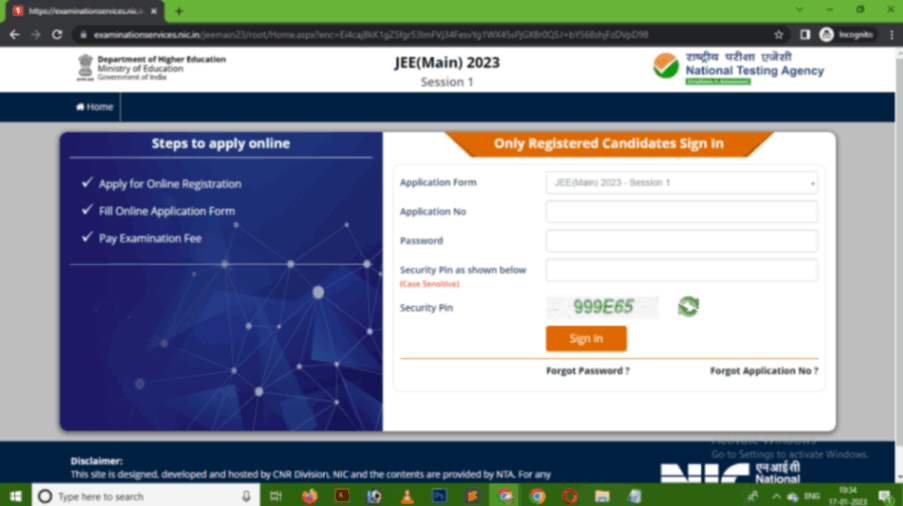 JEE Main 2023 admit card download करने के लिए आप जो पुराने रजिस्ट्रेशन फॉर्म में Application No, Password , और Security Pin डालकर एडमिट कार्ड डाउनलोड कर सकते है।